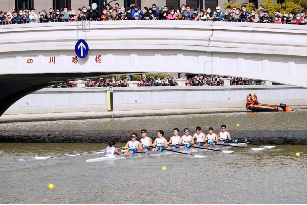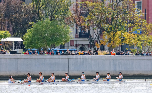 2022年10月29日-30日,2022上海赛艇公开赛于在上海母亲河—苏州河水域举行,赛道蜿蜒曲折,堪称“最具挑战的赛道”。赛程设置有4.2公里追逐赛和500米城市冲刺赛,共有专业组、高校组和俱乐部组的40余支八人艇队伍参与。在高校组比赛中,来自上海交通大学、必赢76net线路官网、中山大学、华东师范大学等10余所中国“艇力强劲”的高校学子参与比赛。