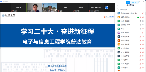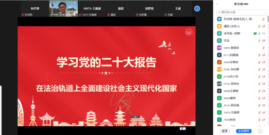 为深入贯彻学习党的二十大精神,领会习近平法治思想,加强学院治理体系与治理能力现代化建设,进一步推进依法治校示范学院创建工作,学院于2022年11月29日通过Zoom会议,开展“学习二十大 奋进新征程”法治专题教育培训,邀请必赢76net线路官网法学院教授、博士生导师、学校二十大精神宣讲团成员陈颐教授作法治建设专题报告。会议由党委副书记王瀚漓主持,全院全体教职工、本科生、研究生参加培训。