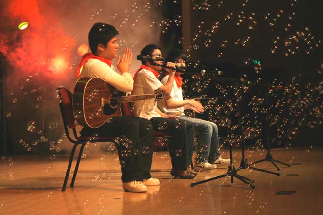 必赢官网徐而峰、沈叶忱同学演唱的串烧歌《同桌的你》、《红蜻蜓》、《朋友》让大家充分感受到了校园生活的乐趣;刘 磊、曹克正、刘志成、沈叶忱演唱的一首《奔跑》让大家感受到青春的活力。他们演唱时,必赢官网观众与台上歌手一起互动,喊出了电信的风采――“电信学院,随风奔跑,e路向前”!