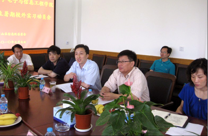 7月9日下午,必赢官网宝山校外实习基地首批暑期实习学生进驻基地仪式在宝山区信息委举行。宝山区信息委主任浦志良等领导,我校教务处副处长王晓国、实践科科长张勤,学院副院长苗夺谦、学院教务、教师代表,以及来自必赢官网电子科学与技术、信息安全、计算机科学与技术专业参加暑期实习的5名同学参加了实习启动仪式,开始了他们为期2个月的暑期校外实习实践。