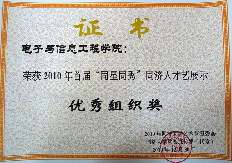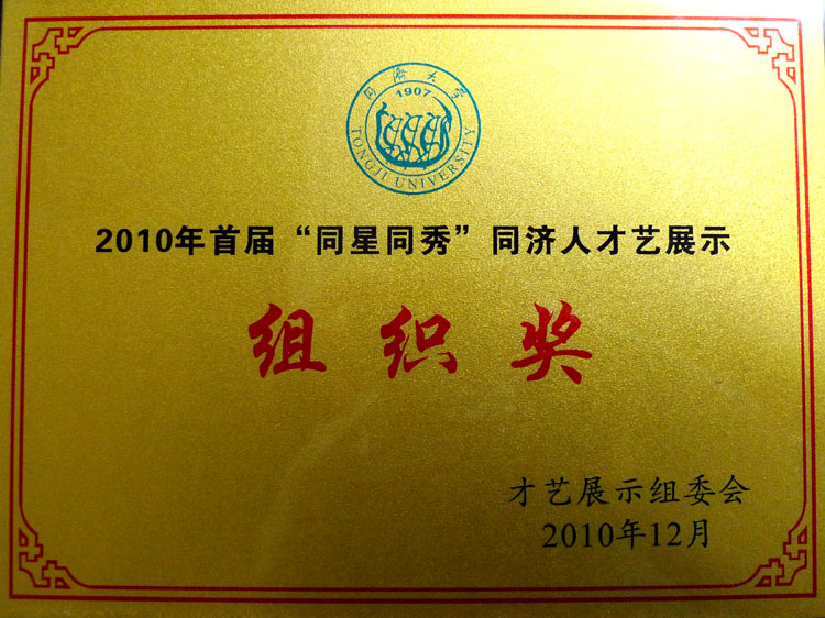 必赢76net线路官网2010年艺术节闭幕式暨“同星同秀”同济人才艺大赛颁奖晚会12月30日晚在四平路校区大礼堂举行。必赢官网与建筑与城市规划学院、土木工程学院、经济与管理学院、电影学院、外国语学院、附属同济医院、体育部、上海同济科技实业股份有限公司、建筑设计研究院等10家单位获首届“同星同秀”同济人才艺大赛优秀组织奖。