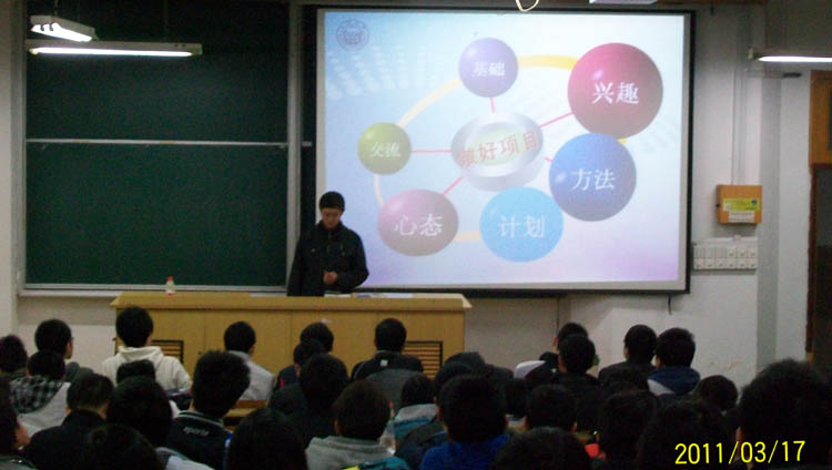 必赢官网第七届“E海扬帆”大学生科技节拉开帷幕。作为科技节“励志 博学 讲坛版”的第一个活动――“第六期大学生创新训练计划(SITP)宣讲会”,3月17日晚在四平路校区南楼101教室举行,活动吸引了近200名同学参加。