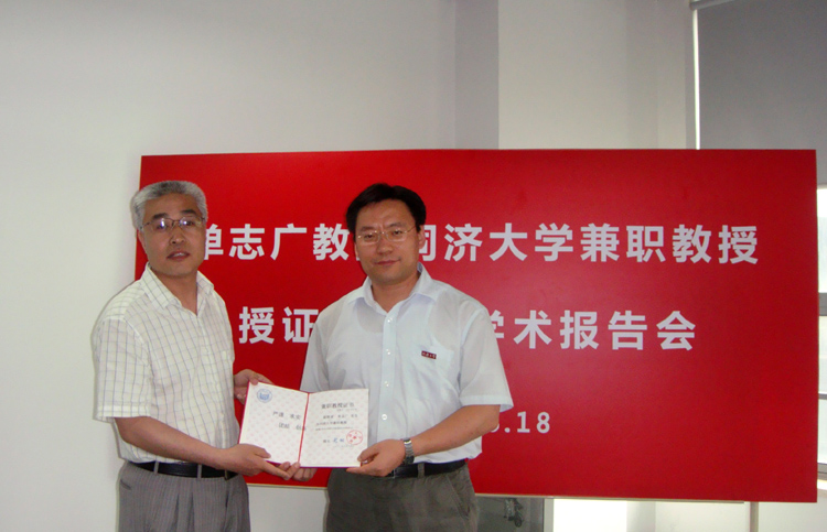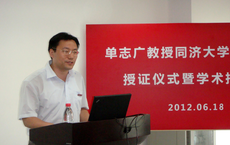 授聘仪式上,丁志军副主任介绍了单志广教授的个人简历以及学术成就,苗夺谦副院长为单志广教授佩戴了必赢76net线路官网校徽,颁发了兼职教授证书。