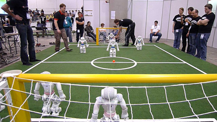 机器人足球赛涉及人工智能、机器人学、通讯、传感、精密机械和仿生材料等诸多领域的前沿研究和技术集成,实际上是高技术的对抗赛。RoboCup作为国际上最具影响的两大世界杯机器人足球赛之一(另一赛事为FIRA),有严格的比赛规则,融趣味性、观赏性、科普性为一体。(程 莉)