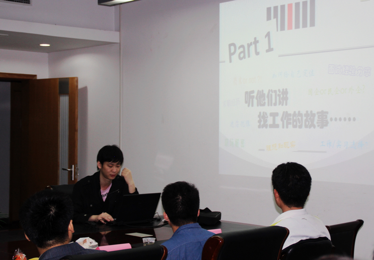 5月31日,职场热身跑的首个活动“求职故事会”的成功举办拉开了2013年“职击梦想,赢在同济”直通梦想季系列会活动序幕。来自Ebay、上汽集团、银联商务、中国银行、华为等知名企业的校友和50余名在校大学生一起分享了他们的求职故事和职场点滴,讲述了如何认识自己、认识职场环境、明确职业目标、制定求职计划等关键内容。互动环节,嘉宾还就如何协调专业学习与实习的关系、行业与岗位的选择、技术与管理的关系、如何快速增强求职技能,提高求职效率等话题展开了交流和讨论,为在校大学生提供了有力的借鉴和正确的引导。
