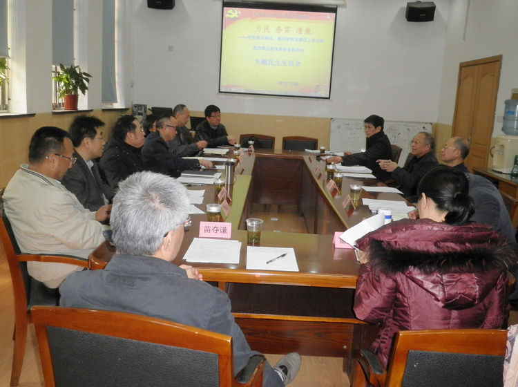 本次会议的主题是:为民 务实 清廉――坚持群众路线,推动学院发展迈上新台阶。会议重点内容是:聚焦“四风”,相互之间开展批评与自我批评。会议首先由童学锋书记做了班子对照检查报告,而后分别是童学锋、向阳、乔非、董变林、苗夺谦、赵卫东、金立军、赵佳敏各自做了针对“四风”问题的对照检查。在每位领导班子成员做完对照检查后,其他同志都对其在工作中存在的问题提出了中肯的意见和建议,院长陈启军作为无党派人士对班子成员提出了期望,希望在大家的共同努力下,能推动学院发展更上一层楼。