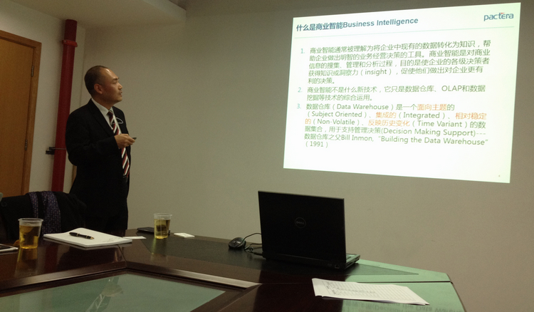 讲座中,王闯舟先生主要从“商业智能的应用示例”、“数据仓库绝决方案架构”和“进入大数据时代”三个方面开展介绍,并结合在商业智能、数据仓库领域的咨询与项目实施服务方面近20年的工作经验展示了丰富的相关实际案例,对于近年来非常热门的大数据概念也提出了自己的见解。最后,他针对师生提出的相关问题进行了解答,取得了良好的效果。