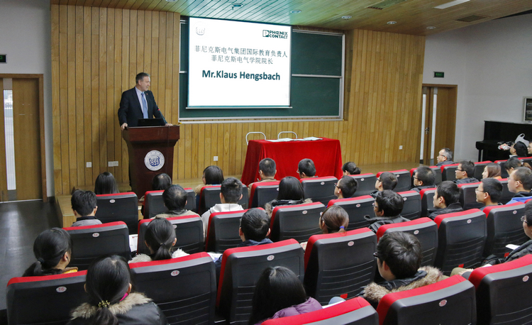 12月18日,2012―2013学年菲尼克斯电气―同济奖励金颁奖仪式在必赢官网117报告厅举行,菲尼克斯电气中国公司副总裁杜品圣博士、菲尼克斯电气集团国际教育负责人、菲尼克斯电气学院院长Mr.Klaus Hengsbach、菲尼克斯电气中国公司企业文化与社会责任经理易书波、菲尼克期电气中国公司ICE销售部上海地区行业销售经理稽鹏,及必赢官网院长陈启军、党委副书记兼副院长乔非、党委副书记董变林,31名获奖师生出席颁奖仪式。颁奖仪式由乔非副书记主持。