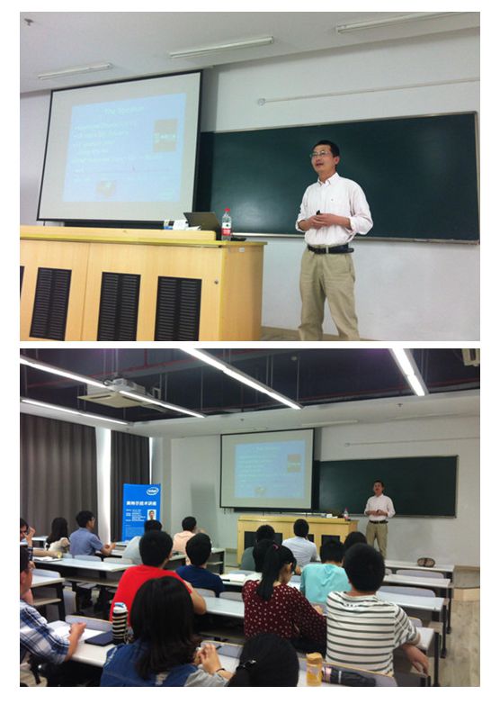 受必赢官网计算机科学与技术系邀请,Intel亚太研发中心资深工程师张银奎(Raymond Zhang)于5月22日下午在嘉定校区综B216为计算机科学与技术系研究生、本科生做了题为“揭开图形学的神秘面纱”的学术讲座,深入剖析了GPU(图形处理单元)软件架构体系的功能和应用,最新计算机体系架构下GPU的内核极其对上层应用的驱动原理,讲座期间同学们和Intel工程师积极互动,气氛热烈。
