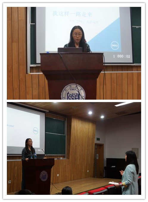 本次活动邀请了戴尔公司全球运营总监蒋凯璇女士,蒋女士通过诙谐、幽默的叙事风格向同学们分享了她在戴尔十七年的职业发展历程,细致讲述了她是如何机缘巧合地进入戴尔,再从最初的五年文件专员一步一步升职到如今的全球运营总监,以及期间遇到的形形色色难题和她解决难题的方式。她的演讲给予在场听众深刻的启迪,如“用智商管理情商”,提倡学会巧妙地选择正确的方式来处理职场中的交流和博弈问题;“你所遇到的问题既是挑战也是机遇”,鼓励大家勇敢地面对挑战;“要做最好的现阶段的自己”,建议把当下做好,才会被更多人认可,才能在更广阔的天空翱翔;“沟通,解决问题和人际关系是我职业生涯的武器”展示了她在职场宝贵的经验,也给同学们提供了很好的借鉴。