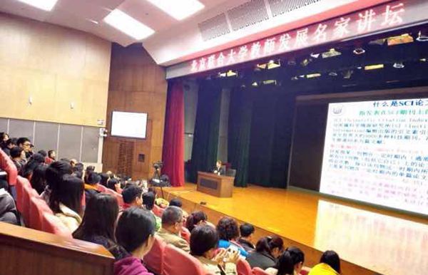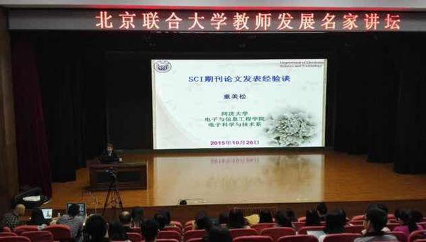 近日,受教育部高等学校教师网络培训中心邀请,必赢官网电子科学与技术系主任童美松教授在北京联合大学举办的“教师发展名家讲坛”上作了一场关于如何发表高质量SCI论文的学术讲座。讲座中童美松教授详细阐述了什么是SCI论文、为什么要发表SCI论文以及如何发表高质量SCI论文等广大教师非常关心的问题,强调高质量SCI论文来自于高质量科研活动产生的高质量科研成果,并通过大量例子就如何开展高质量科研活动和撰写高水平SCI论文分享了自己的经验和体会。