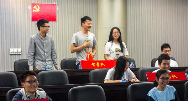 为深入学习贯彻习近平总书记系列重要讲话精神,响应党中央对于青年学生学习党章、遵守党规,增强党性修养,做合格党员的号召,进一步推动“两学一做”学习教育的深入开展,5月24日下午,学院党委在嘉定校区同心楼124室成功举办了“学金科玉律,做先锋模范”党章知识竞赛活动。校党委研究生工作部副部长宋木生、学院党委副书记董变林、学院计算机联合党总支副书记张砚秋、电气信通联合党总支副书记张明锐出席了竞赛现场,来自学院四个总支的党员组成的八支参赛队参加了本次比赛。
