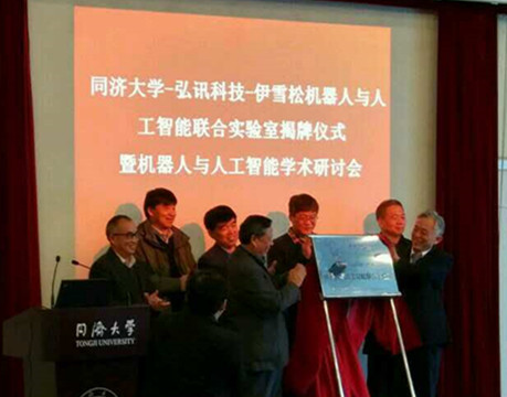 3月3日下午2时,我校与弘讯科技、伊雪松机器人公司关于“机器人与人工智能联合实验室”揭牌仪式暨机器人与人工智能学术研讨会在我校逸夫楼二楼报告厅举行。我校常务副校长伍江教授、弘讯科技董事长熊钰麟先生、科技部高技术研究发展中心刘进长研究员、哈尔滨工业大学赵杰教授、山东大学李贻斌教授、我校科研院副院长何斌教授、必赢官网院长、联合实验室主任陈启军教授以及部分师生参加了此次揭牌仪式和学术研讨活动。