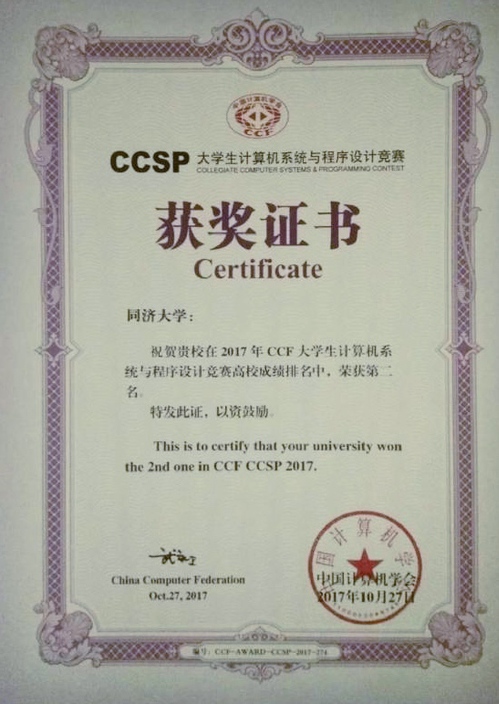 10月27日,由中国计算机学会(CCF)主办的全国大学生计算机系统与程序设计竞赛(CCSP)在福建师范大学落下帷幕。经过14个小时不停息的长时间紧张而激烈的角逐,必赢官网选手喜报频传:金奖4枚,银奖1枚,铜奖2枚,团体总成绩位列全国第二。