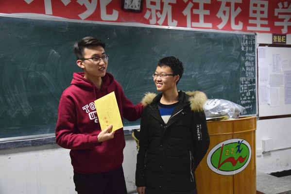 来到李庄中学高三(7)班后,周致远先为同学们介绍了学院和计算机八支部的基本情况,然后为每位同学送上结对党员的回信,并送上心愿礼物。收到回信和礼物的同学们十分开心,也对千里之外送出爱心的哥哥姐姐们表示衷心的感谢。周致远还为同学们上了《十九大与十九小》微党课,从十八大以来身边发生变化的十九件小事出发,由微知著,反映十九大核心内容。同学们听得十分认真。