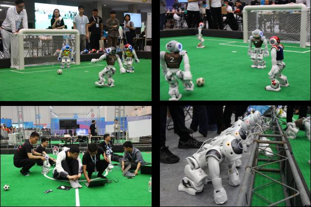 图4:足球机器人比赛精彩瞬间与现场调试