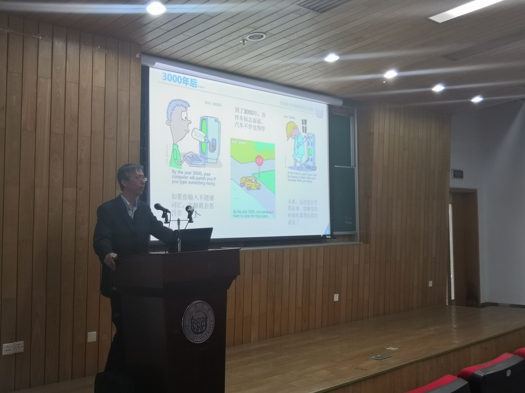 张老师用通俗易懂的语言给大家介绍了人工智能的发展,对人工智能的理解,人与机器的关系等等。同学们热情高涨,怀着极大的兴趣认真听讲。